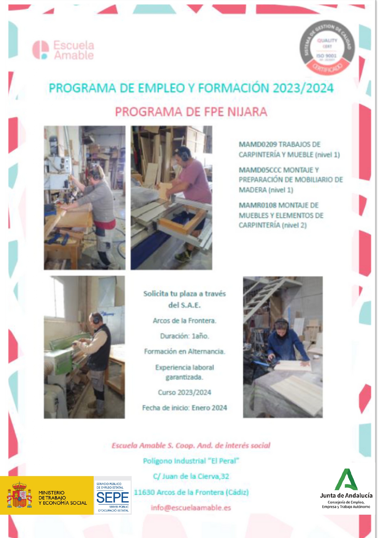 Programa de Empleo y Formación 2023/2024. PROGRAMA FPE NIJARA. Cartel publicitario